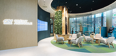 Kategoria: Punkt sprzedaży usługBank Credit Agricole Adres: Rondo Daszyńskiego 2a, Warszawa Firma: MUSU Anna Irek Pierwsza placówka banku Credit Agricol w nowym koncepcie, którego głównymi założeniami są: klient i jego potrzeby są zawsze w centrum uwagi; dobry klimat; inspiracja naturą. Wykorzystując potencjał lokalu z elewacją po łuku oraz założenia działań wokół Człowieka zaprojektowano space plan na planie koncentrycznym wokół głównej strefy dla Klientów. Obłe kształty ścian, wyposażenia i ekranów, miękkie formy mebli budują komfortową otulinę i przytulną atmosferę, zaprzeczając formalnym wnętrzom instytucji bankowych. Centralna strefa – epicentrum z tężnią solankową i ścianą zieleni zaprasza do chwili relaksu przy kawie. Poszczególne stanowiska, gabinety dbają o prywatność Gościa a jednocześnie są w stanie zapewnić przejrzystość planu. Lokal przystosowany w pełni dla osób z niepełnosprawnościami – przyjazny dla osób poruszających się na wózkach, wyposażony w pady dla osób niewidomych oraz w pętle indukcyjną dla niesłyszących. |